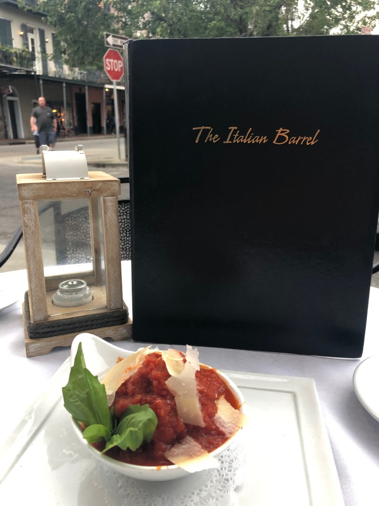 Next up was bike riding to Mass at the St Louis Cathedral. BEAUTIFUL Church!!! An added bonus was running into familiar faces, meeting new people with great conversation. Following Mass, we headed to dinner at the Italian Barrel. It was our first time there, and definitely won’t be our last. We chose an outdoor table, which was perfect for listening to a local musician across the street, and great people watching. The food was absolutely delicious and the staff was very welcoming and friendly. Ironically enough, it was located across the street from Cafe EnVie!