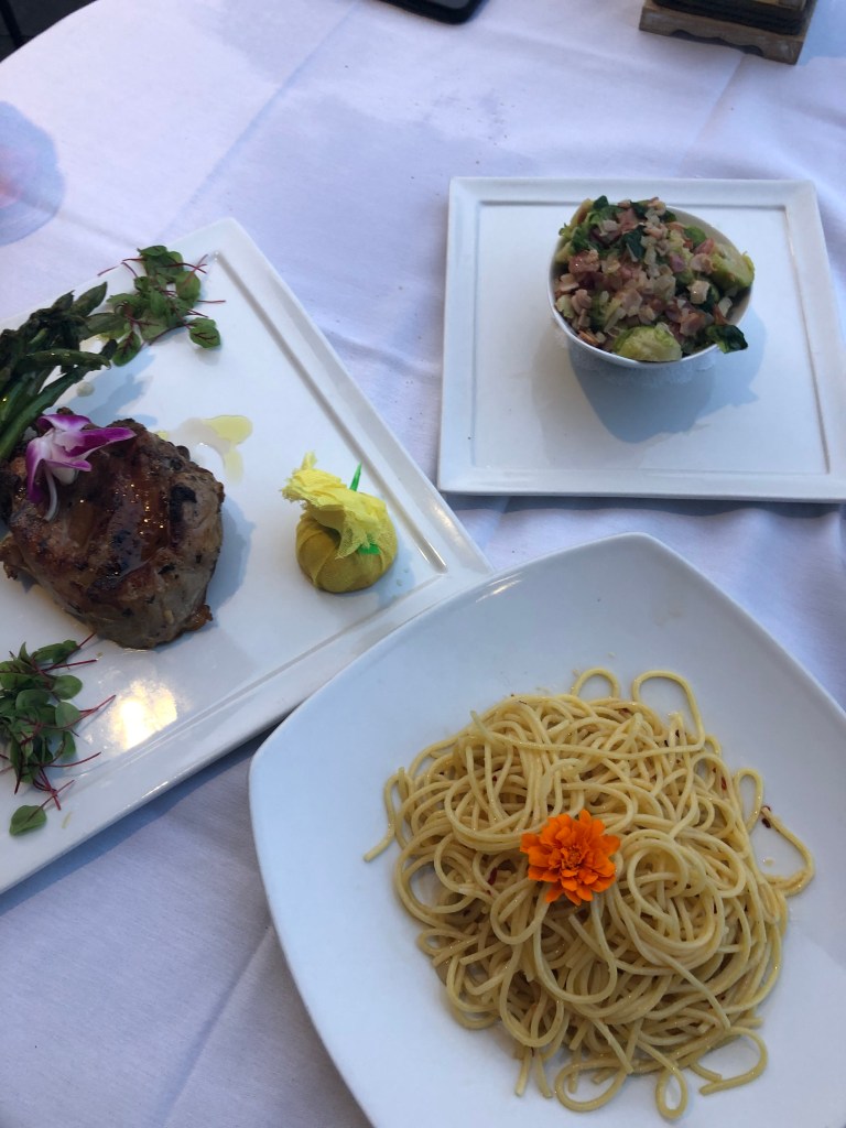 Veal special, Spaghetti Aglio Olio Pepperoncino, Brussels Sprouts 😍