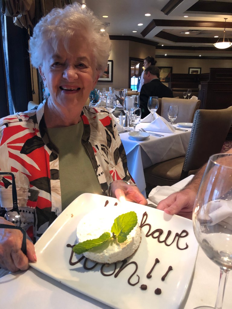 Of course, a celebration was in order – Ruth Chris Steak House!!! They sure did make my Mom feel special ❤️ The manager and the wait staff stopped by the table to share in our joy. To top it off, Ruth Chris treated my Mom to a celebratory cheesecake with the caption “You Have Won!!” Yes Mom, You HAVE won. Adios cancer.