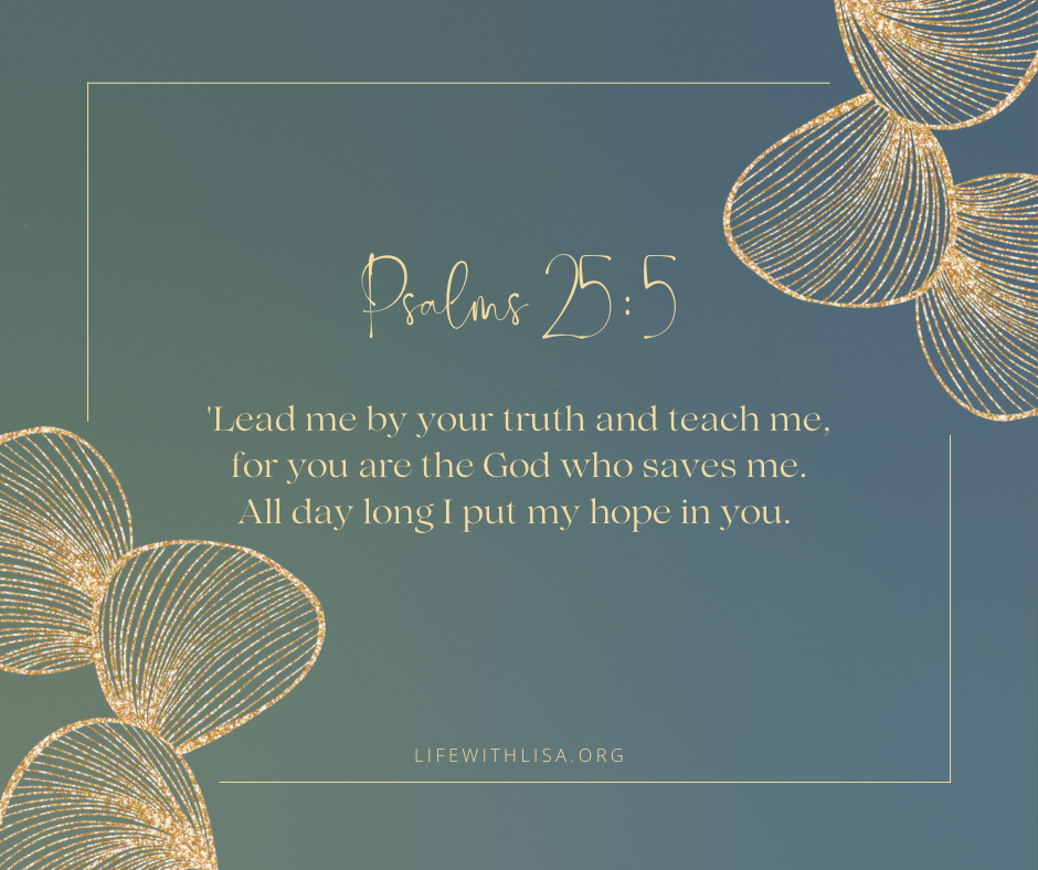 Lead me by your truth and teach me, for you are the God who saves me. All day long I put my hope in you.