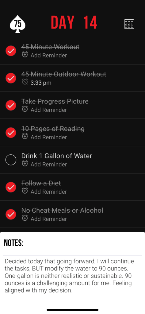 With that revelation along with the desire to start 75 Hard, mainly for the water requirement, I knew I had to take action. Around the same time I received an invitation to do 75 Hard, which I accepted. In 2021-22 I did Live Hard which starts with 75 Hard and proceeds with three phases throughout the year and it was transformative on many levels. Regardless, I vowed I would never do it again. And yet, here I was…
