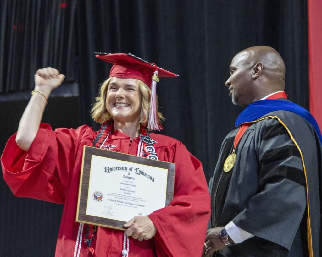 August 8th will forever be a special day Steven and I had circled, dreamed of, and worked toward together since 2022. By the grace of God, I did it. I graduated from the University of Louisiana at Lafayette, just as we planned. Thanks to our children and their amazing spouses, the day was as special and full of love as Steven had envisioned. I felt his pride and presence surround us.
